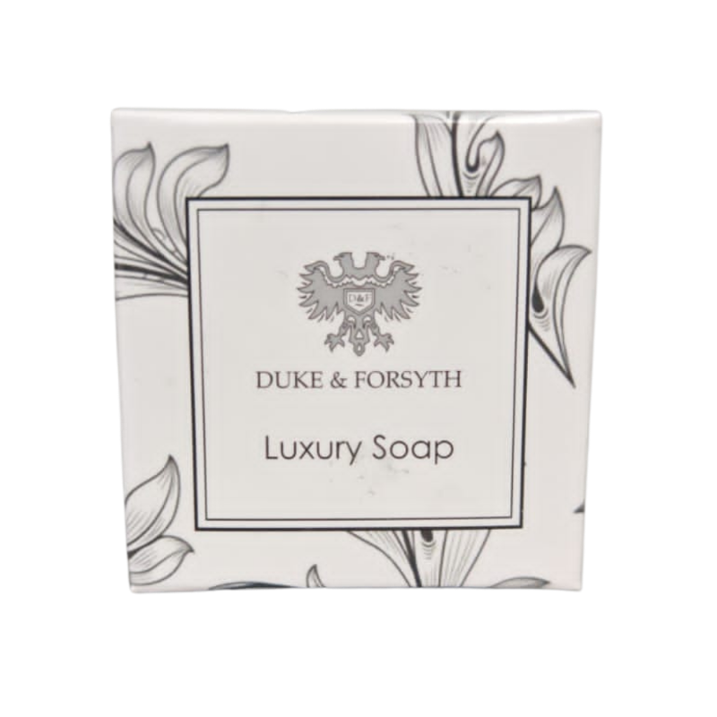 Enhance your guests' stay with our Duke & Forsyth Range 25g Boxed Soap. This classic bar offers a refreshing cleanse and comes in a decorative box, providing a consistently clean and elegant experience for every arrival.